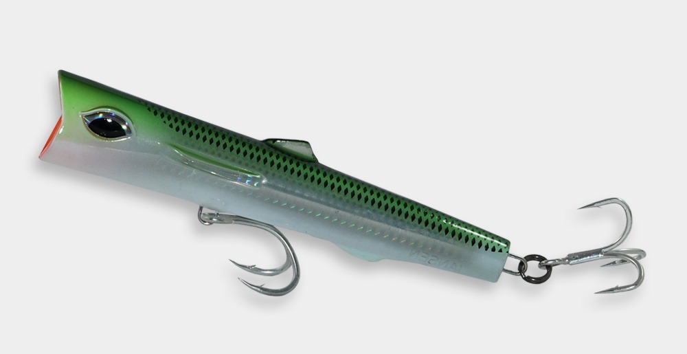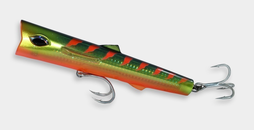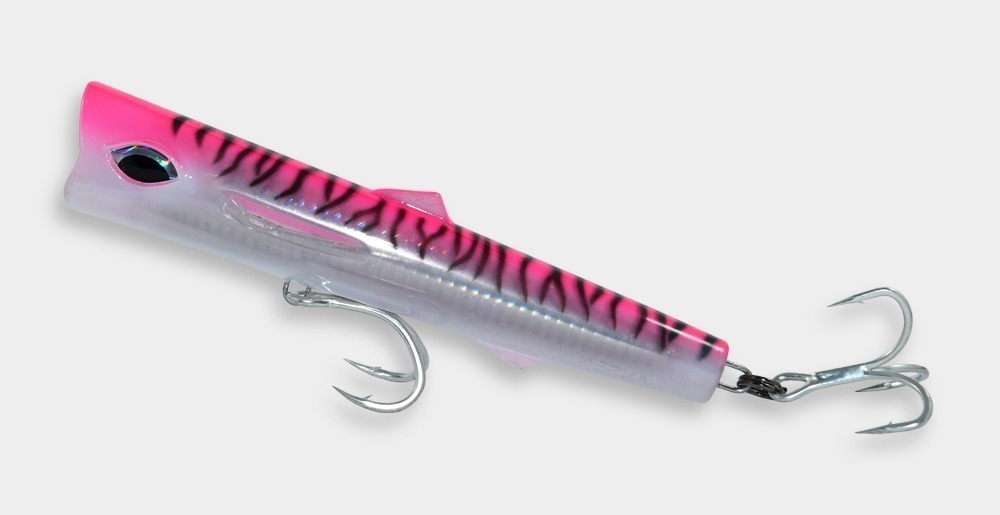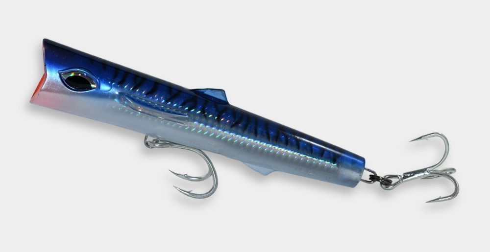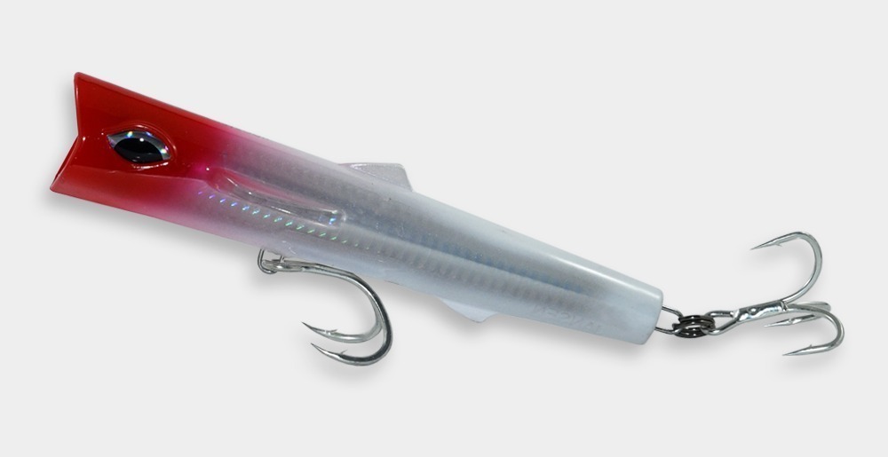 El “ROOSTER RIPPER” es un curricán tipo popper sumergible. Lo diseñamos para los días cuando los poppers regulares y flotantes no abarcan la distancia requerida. El diseño revolucionado ayuda el curricán a mantenerse en la superficie. Recógelo con velocidad moderada, moviendo la caña con jalones fuertes hacia arriba.